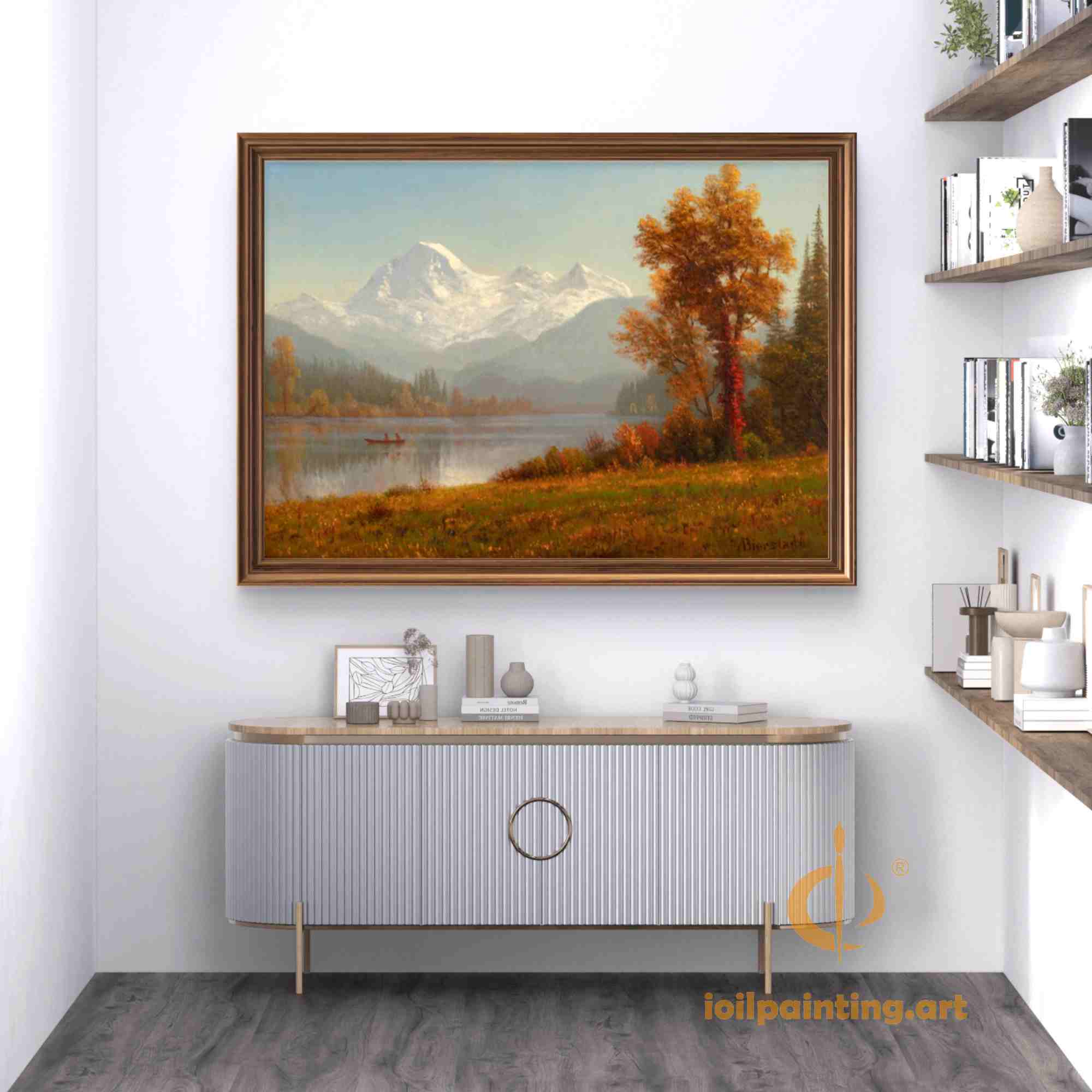 Bring home this timeless masterpiece today - where every glance transports you to Bierstadt's majestic alpine world, surrounding you with nature's grandeur and the quiet poetry of autumn reflections.