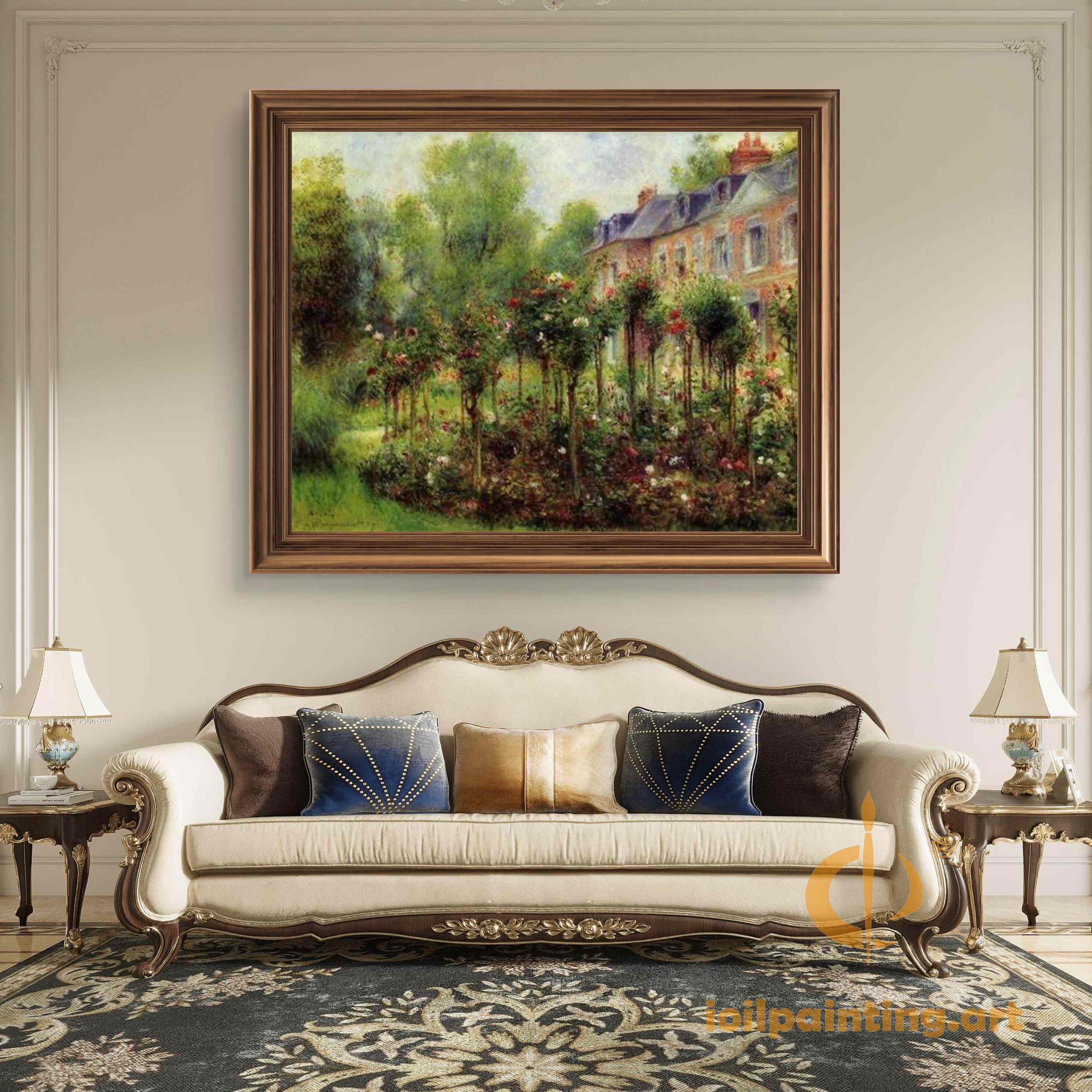 More than decor—this is a portal to Monet's beloved Giverny. The composition's layered perspective guides your eye from the textured roses to the nostalgic architecture, creating wonderful depth. Notice how the painting seems to change throughout the day as light plays across its surface.