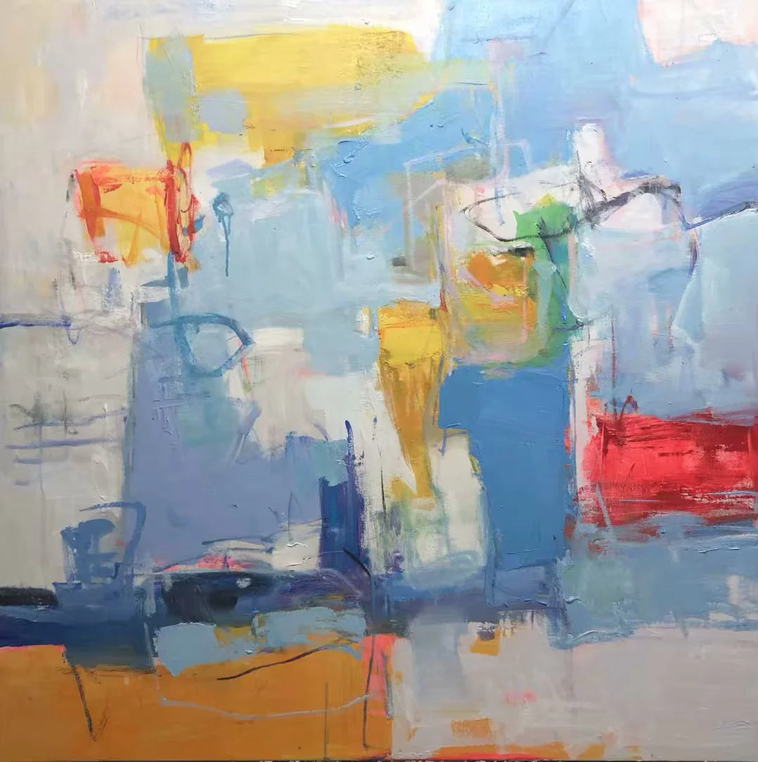 "Expressive Abstract Oil Painting - Bold Color Harmony - Handmade Contemporary Wall Art for Modern Interiors"