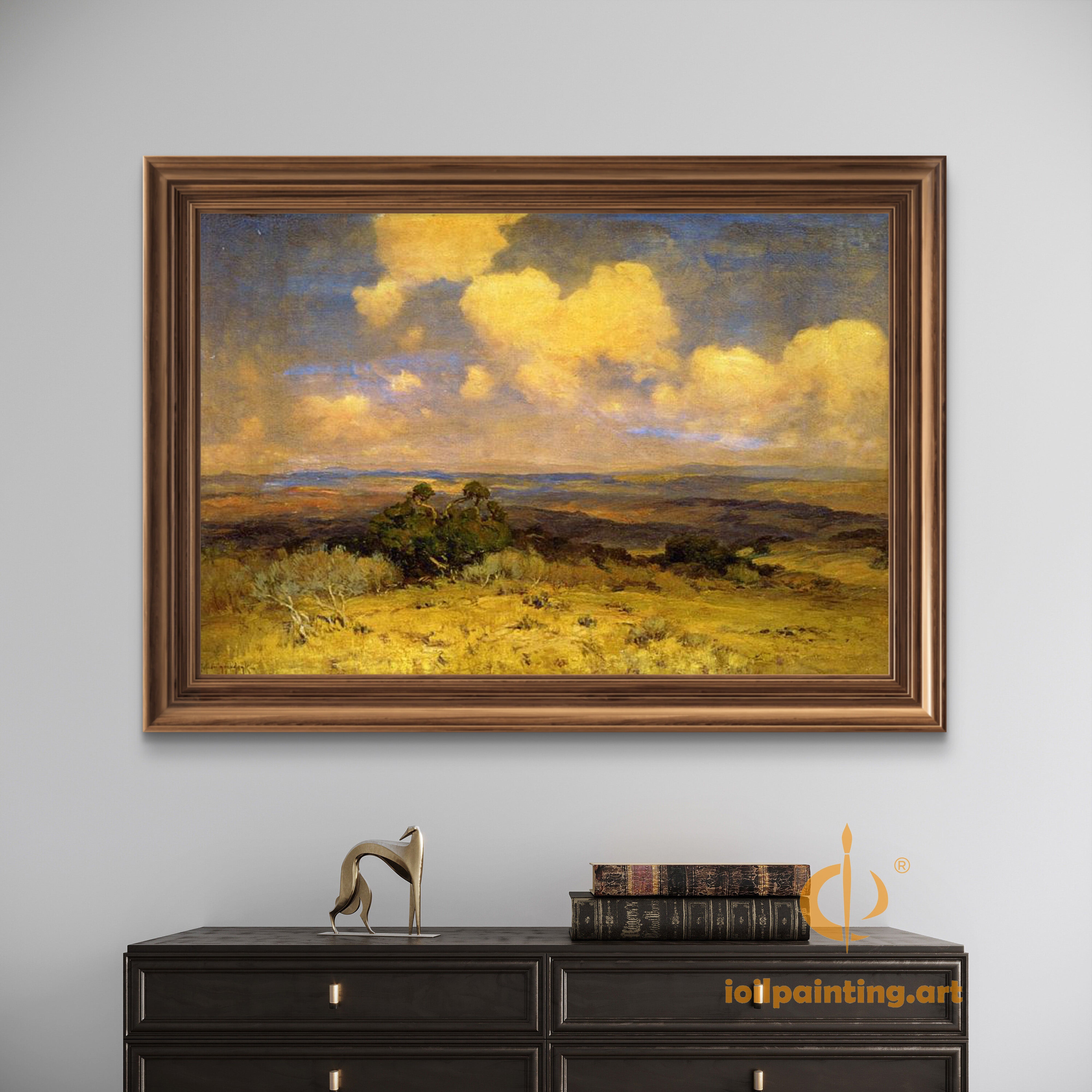 More than decor—this is a daily retreat to pastoral serenity. The composition's harmonious blend of land and sky creates a living artwork that transforms with your home's lighting. Notice how morning light intensifies the golden fields while evening illumination softens the cloud formations.