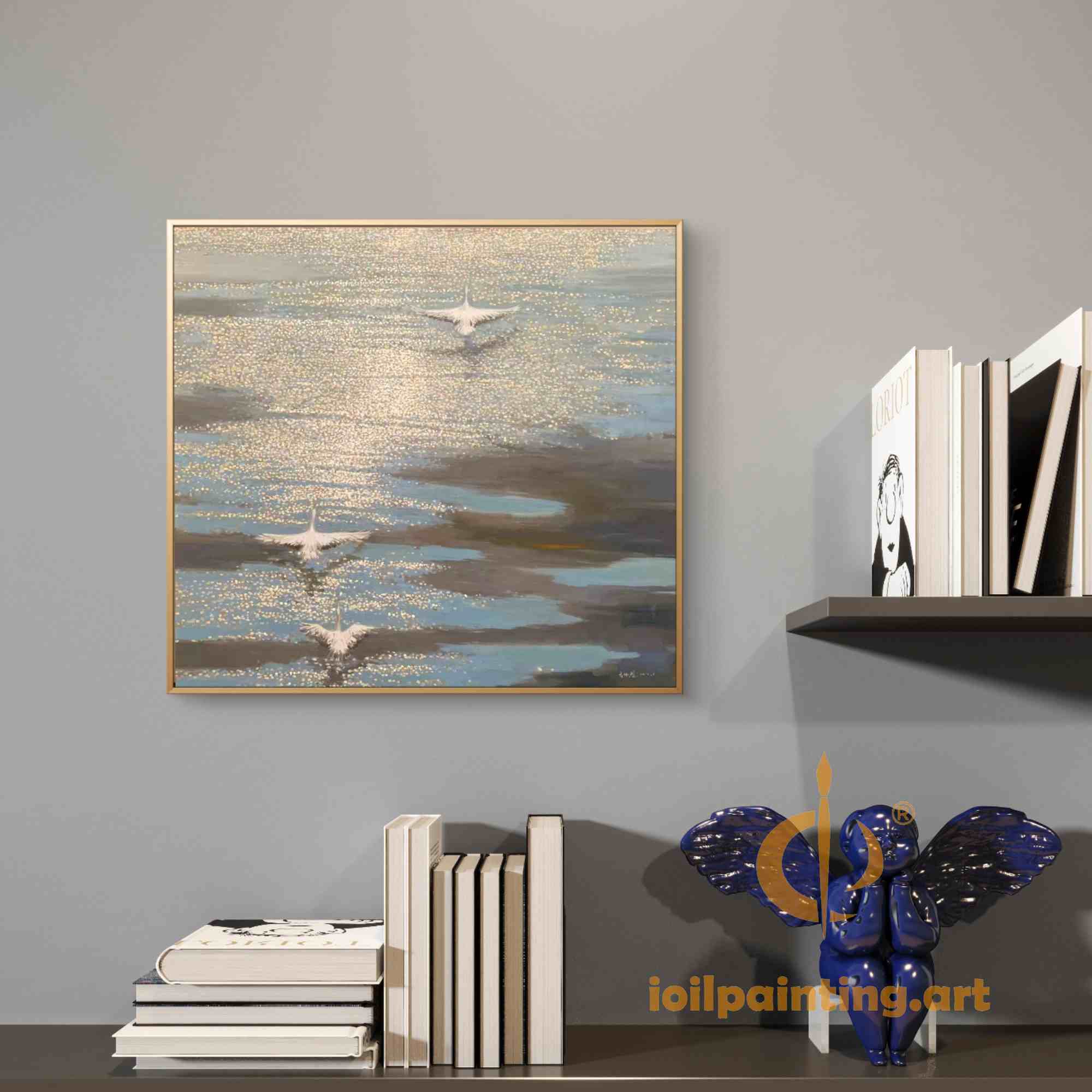 More than decor—this is daily therapy for the soul. The composition's perfect balance between the swans' quiet elegance and the water's luminous energy makes it endlessly fascinating. Notice how the golden light transforms throughout the day, offering new discoveries with each viewing.
