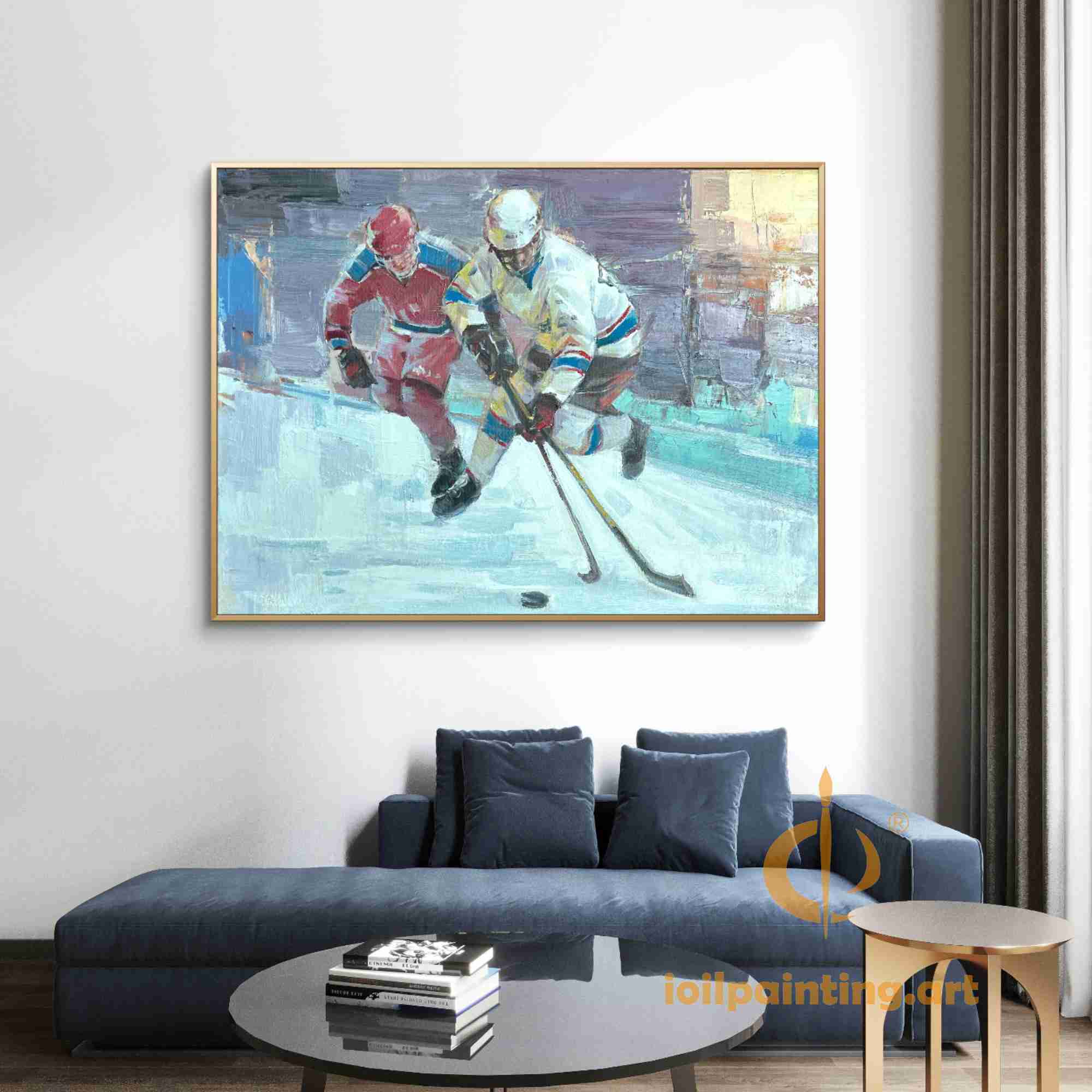 More than decor—this is a celebration of hockey's thrilling spirit. The composition's perfect balance between the players' intensity and the rink's atmosphere makes it endlessly captivating. Notice how the painting seems to come alive as lighting changes throughout your day.