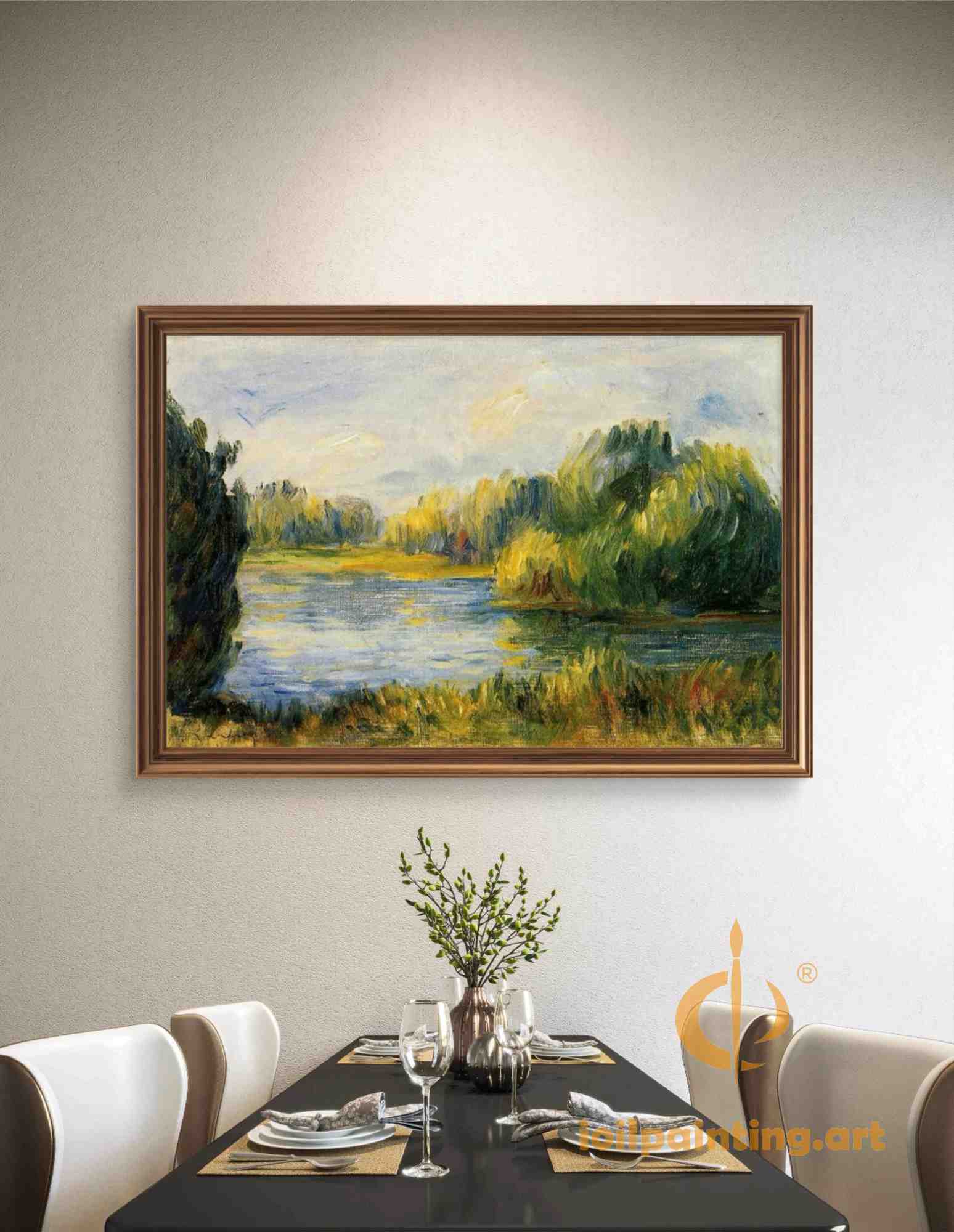 "Pierre-Auguste Renoir's 'Serene River Landscape' - Premium Hand-Painted Oil Painting Reproduction"