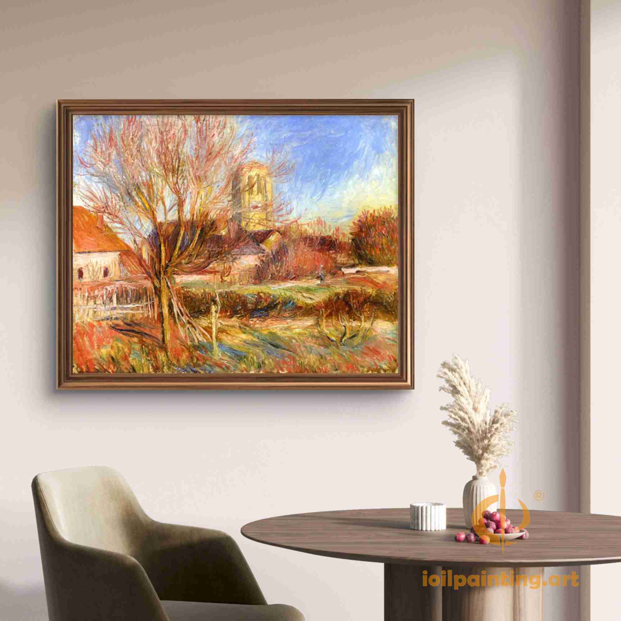 "Pierre-Auguste Renoir's 'Serene Village with Church Spire' - Premium Hand-Painted Oil Painting Reproduction"