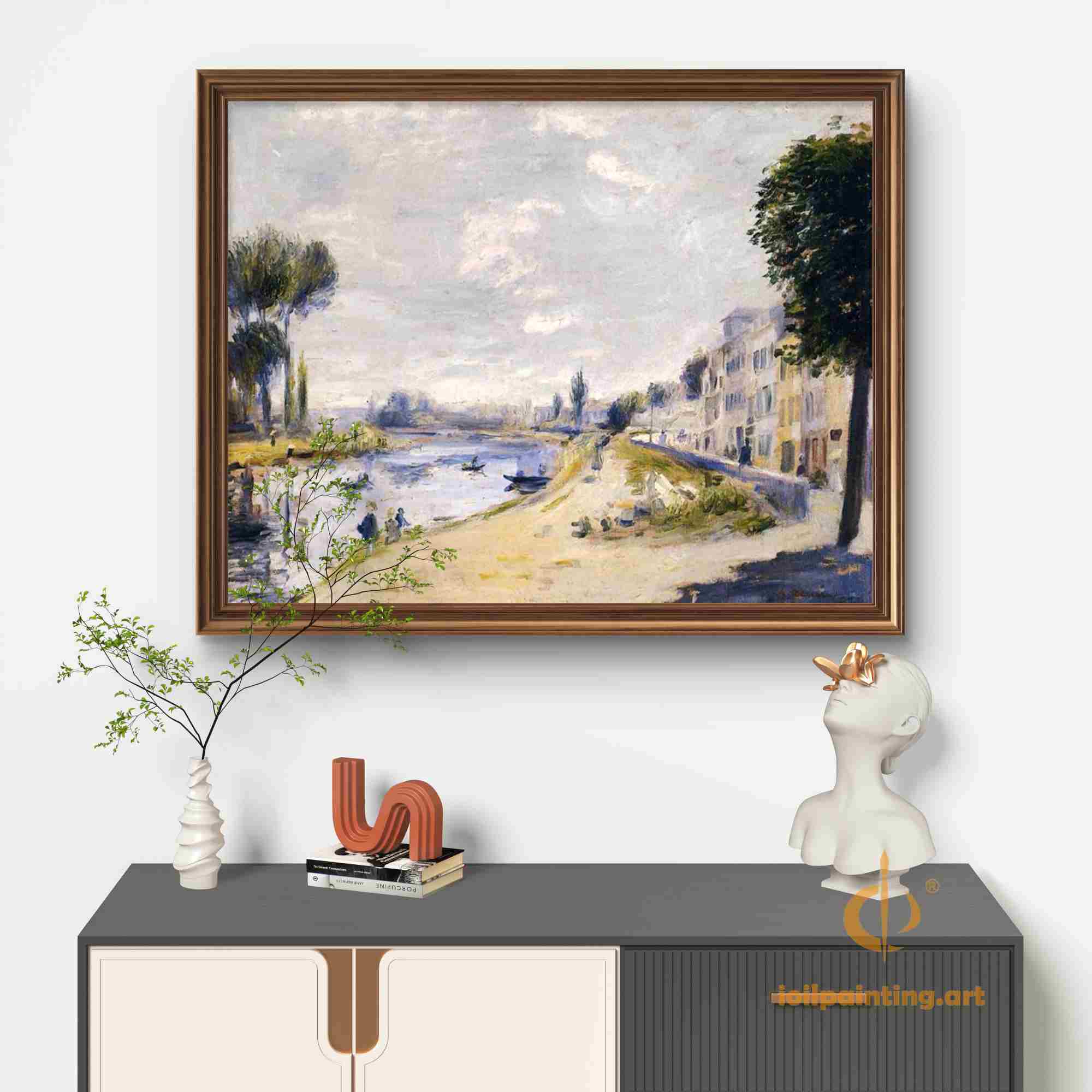 "Pierre-Auguste Renoir's 'Tranquil Riverside Promenade' - Premium Hand-Painted Oil Painting Reproduction"