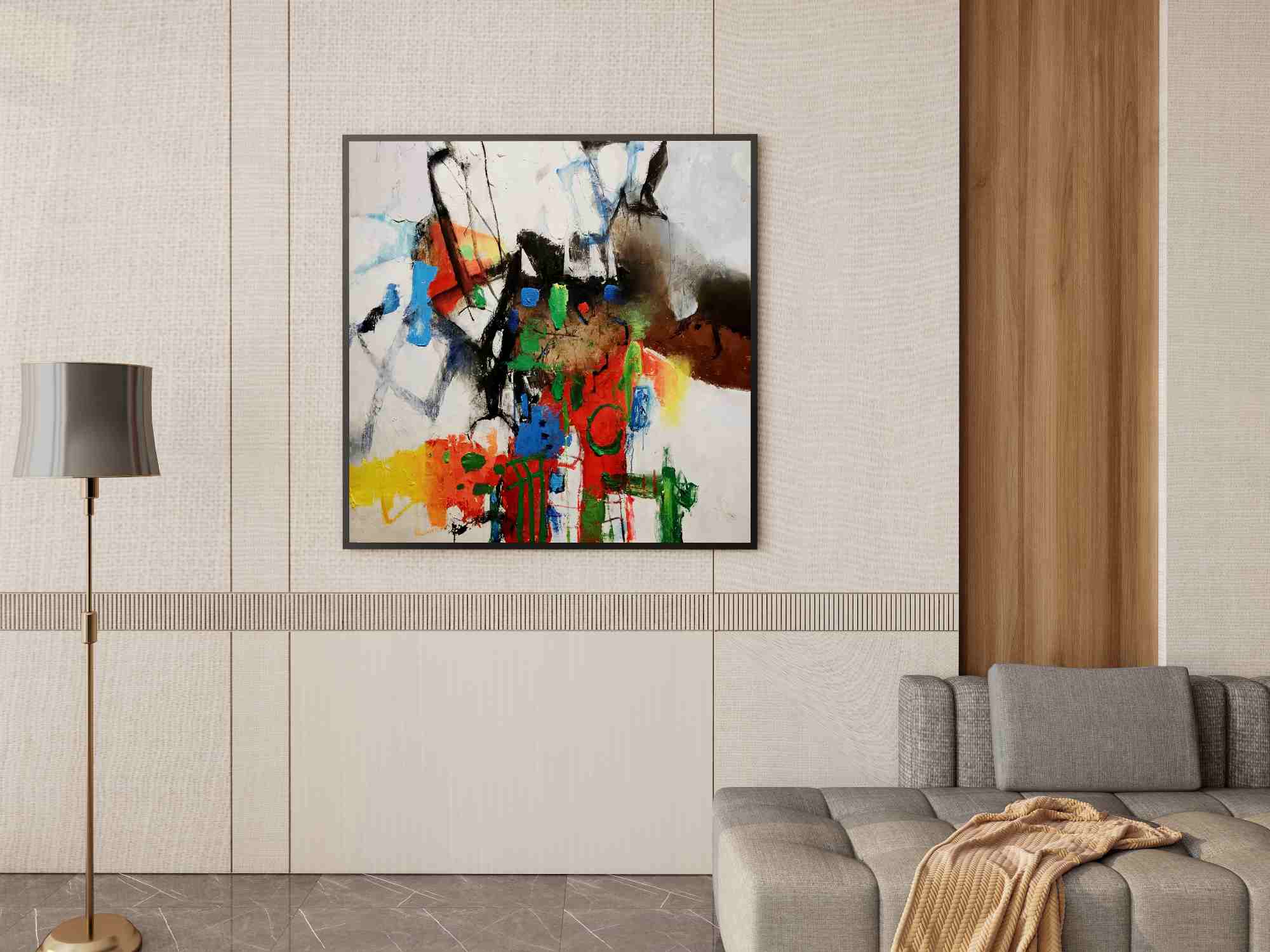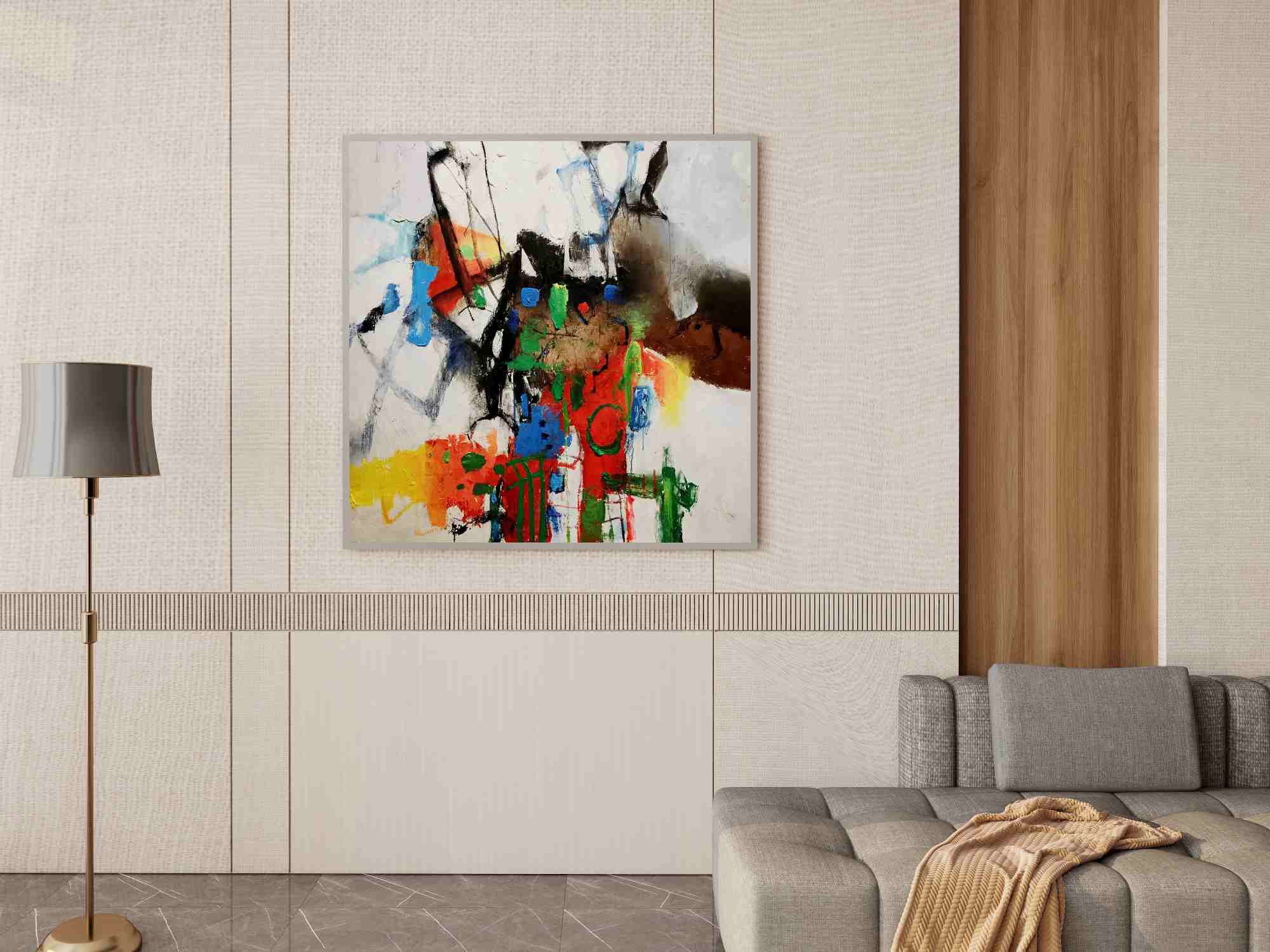 "Textured Abstract Oil Painting - Bold Color Explosion - Handmade Contemporary Wall Art for Modern Interiors"