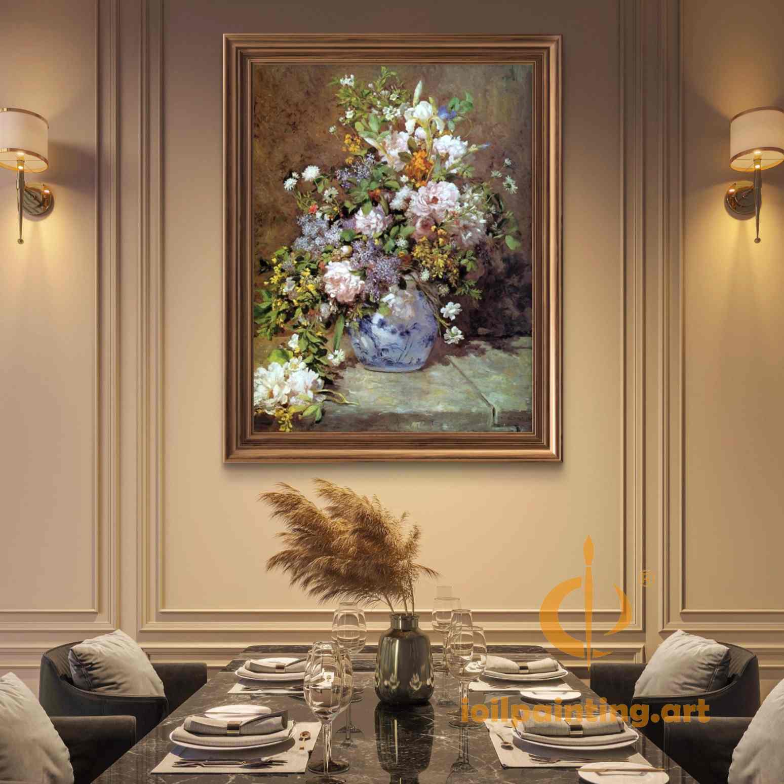 • The signature impasto brushwork that makes each flower petal appear three-dimensional