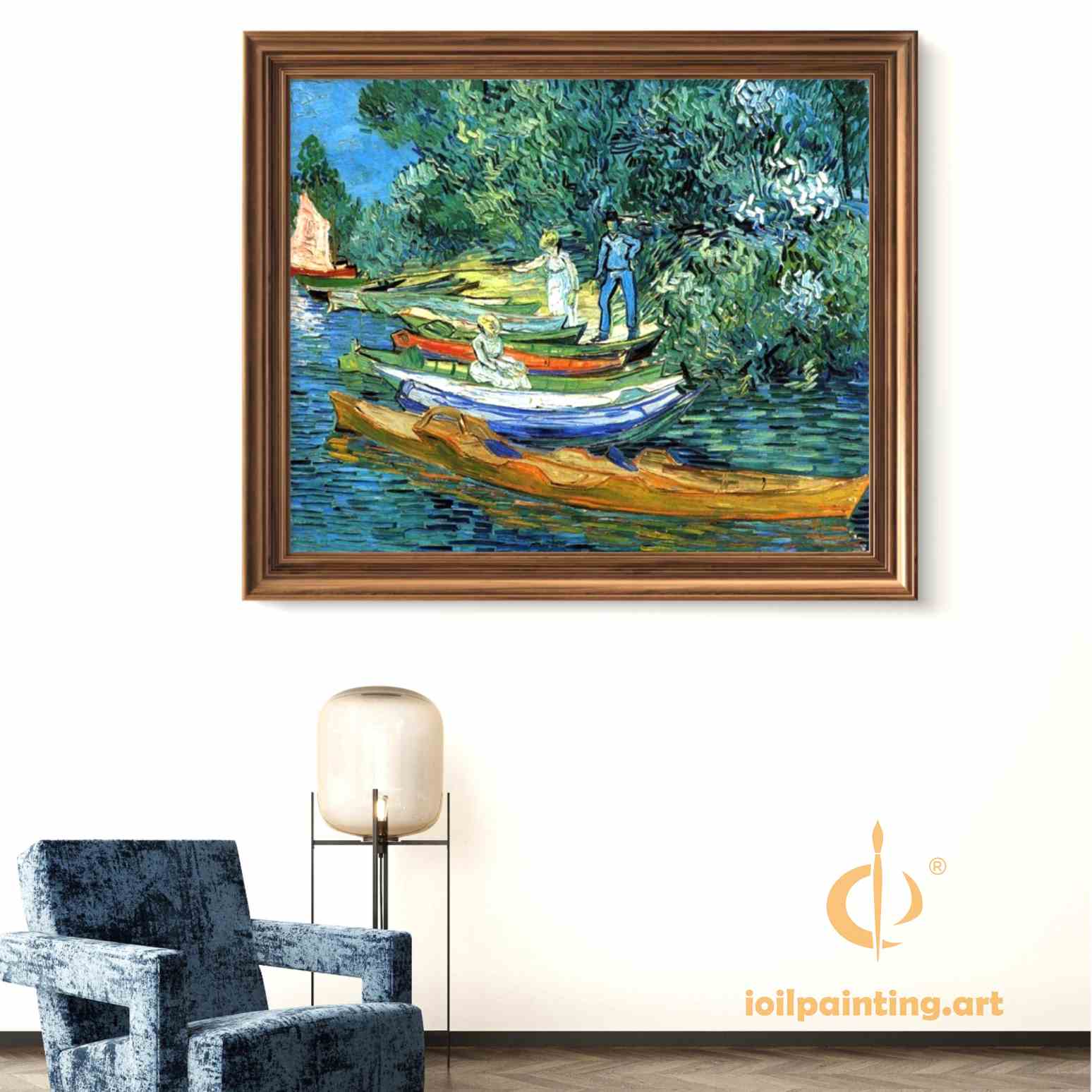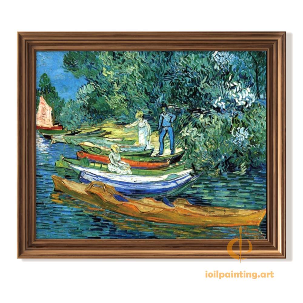 "Vincent van Gogh 'Riverside Leisure' - Hand-Painted Post-Impressionist Oil Painting Reproduction | Vibrant Boating Scene"