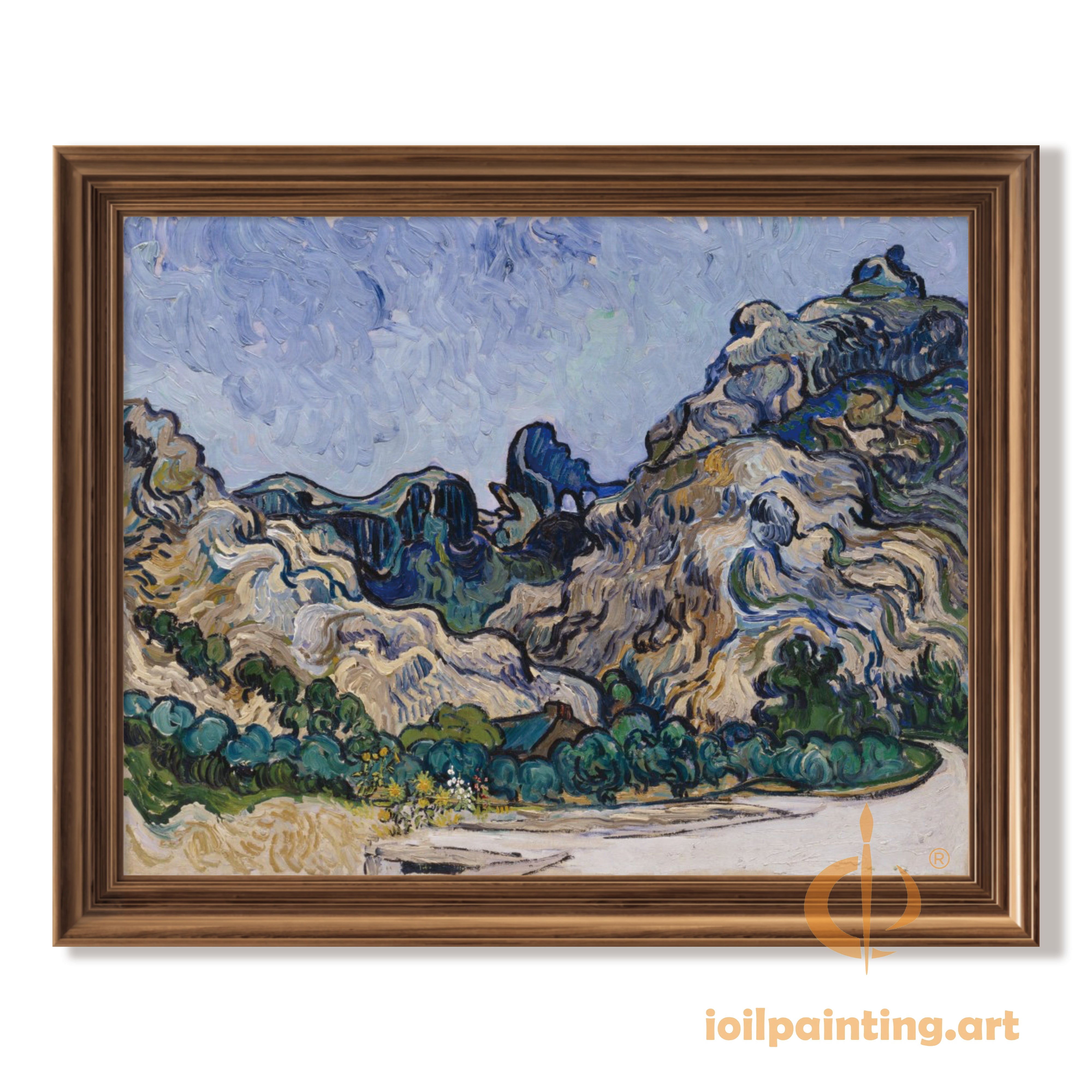 Immerse yourself in the breathtaking grandeur of nature with this exquisite hand-painted reproduction of Vincent van Gogh's "Mountain Majesty." This captivating artwork showcases the Dutch master's revolutionary vision - rugged mountain peaks in vibrant blues and greens rise dramatically against a soft sky, their textured slopes alive with bold, expressive brushstrokes.