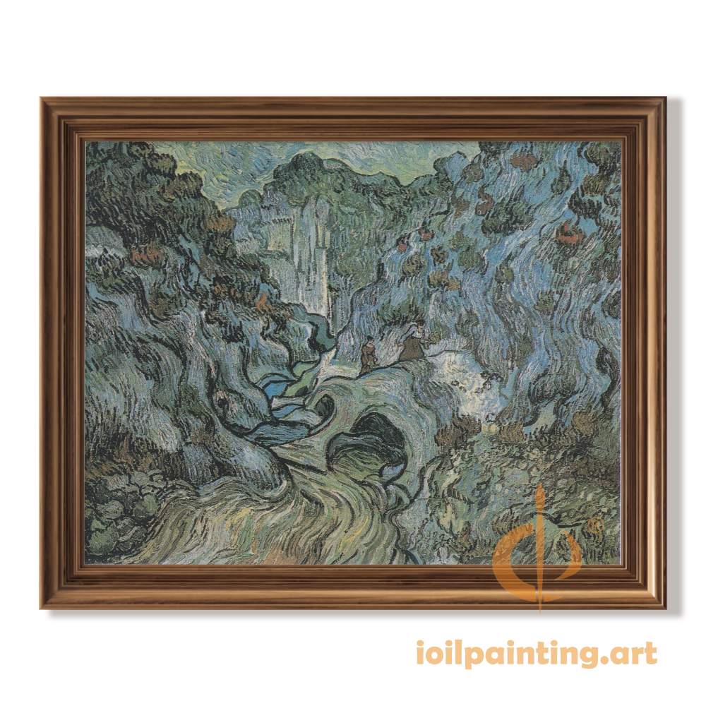 Immerse yourself in the breathtaking beauty of nature with this exquisite hand-painted reproduction of Vincent van Gogh's "Mountain Stream Landscape." This captivating artwork showcases the Dutch master's revolutionary vision - a crystal-clear stream meanders through rugged rock formations, its shimmering waters contrasting with the lush green vegetation clinging to steep mountain slopes.